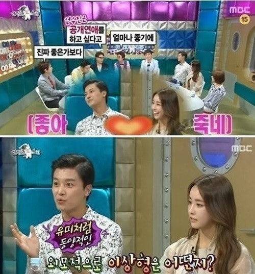 이에 MC들은 “진짜 좋은가보다. 얼마나 좋기에 공개연애를 하고 싶다고…”라며 놀라움을 나타냈습니다. 이에 연우진은 "정유미 같은 털털한 여자가 이상형이고 외모도 동양적으로 생긴 사람이 좋다"라고 솔직히 고백했습니다.