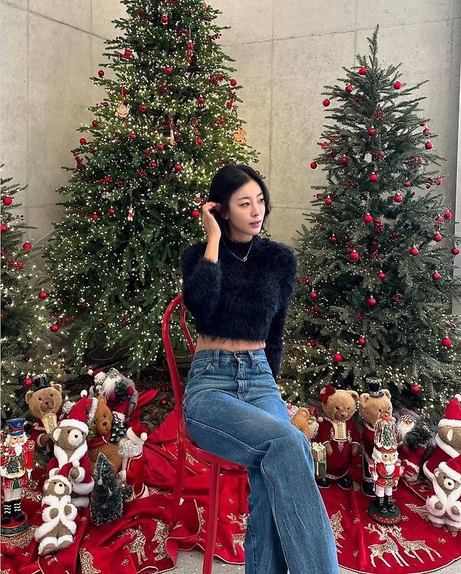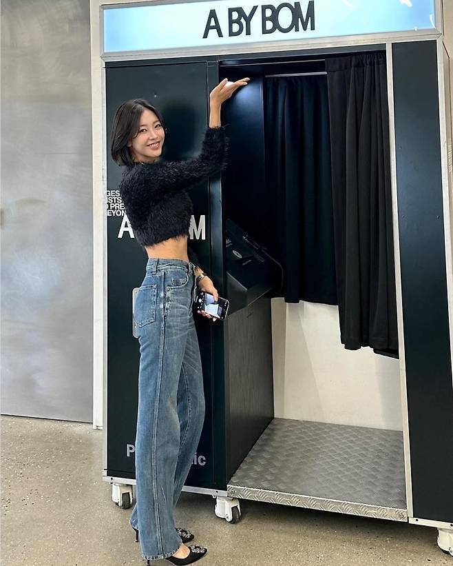 고원희는 블랙 퍼 소재의 크롭 니트를 착용한 그녀는 유니크한 텍스처와 허리 라인을 드러낸 과감한 디자인으로 트렌디한 무드를 완성했습니다.