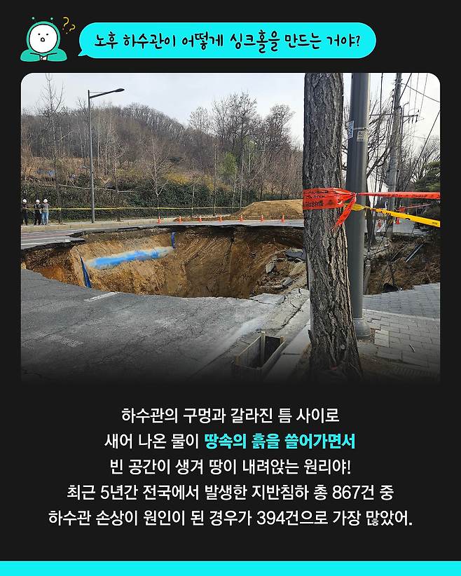 노후 하수관은 싱크홀의 주된 원인으로 꼽힙니다.