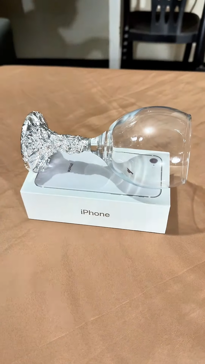 5. 빛이 최대한 집중될 수 있도록 방을 어둡게 하고, 와인잔 뒤에 핸드폰을 배치시킵니다.