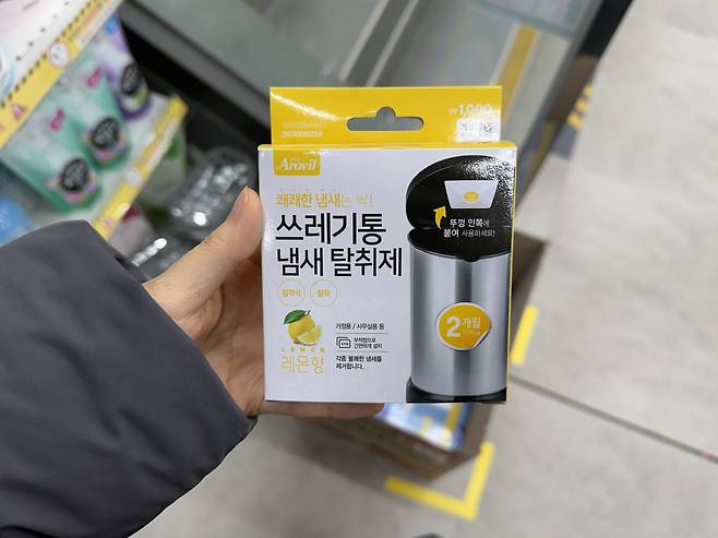 쓰레기통에서 올라오는 냄새는 여름철 특히 심해집니다. 탈취제를 하나 넣어두면 냄새를 줄이는 데 도움이 됩니다.