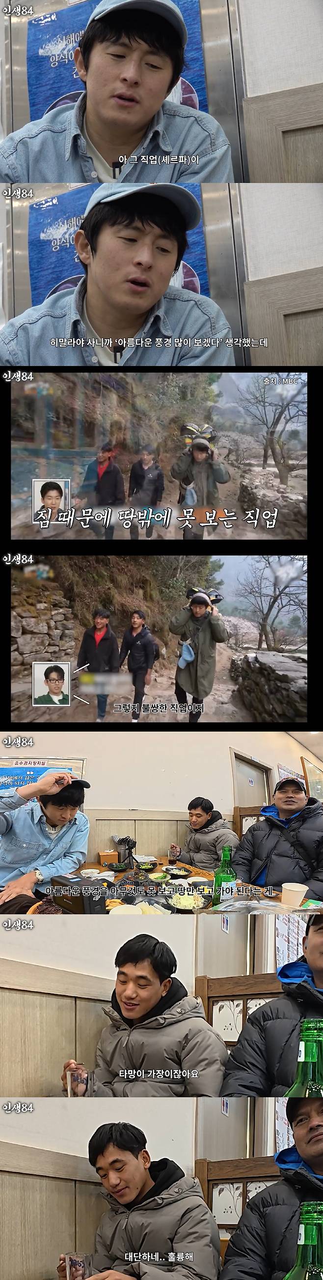이어 "혼자 8시간 동안 걷다 보니 말 못 하고, 노래를 부를 수밖에 없더라. 셰르파라는 직업이 히말라야에 산다고 해서 풍경을 많이 볼 줄 알았는데, 산을 제대로 못 보고 땅만 본다"며 안타까워 했따. 검비르 역시 "정말 불쌍한 직업이다. 아름다운 풍경도 못 보고 땅만 본다"고 공감했다. 기안84는 "타망이 가장이지 않냐. 정말 훌륭하다"며 존경의 마음을 전했다.
