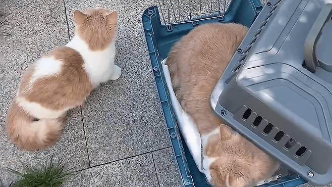 그런데 예상치 못한 상황이 벌어졌습니다. 집으로 돌아오는 길에 고양이를 담았던 이동장이 갑자기 부서져 버린 것입니다. 남성은 당황스러움을 감출 수 없었습니다.