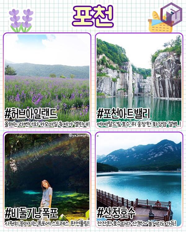 ✅ 허브아일랜드 ✅ 아트밸리 ✅ 비둘기낭폭포 ✅ 산정호수