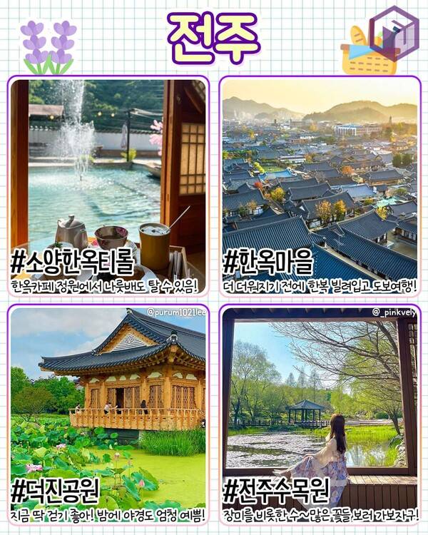 ✅ 소양한옥티롤 ✅ 한옥마을 ✅ 덕진공원 ✅ 전주수목원