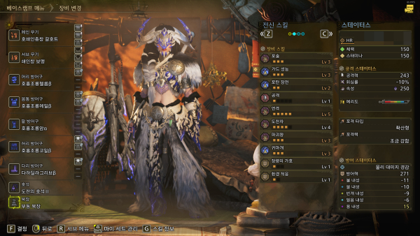 머리부터 발끝까지 여러 파츠에 붙은 스킬과 장식품 슬롯을 하나하나 조합해 자신만의 최적의 세팅을 완성해 나가는 과정이 몬스터 헌터의 핵심 재미 중 하나다.