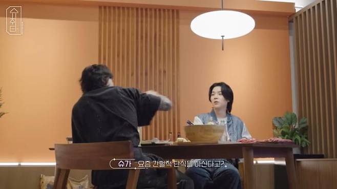 “이론은 빠삭하게 공부했고,하지만 강박처럼 하지는 않는다”고 말하자 슈가도 “하루에 한두끼만 먹는다고 생각하면 스트레스 안 받더라”며공감했는데요.