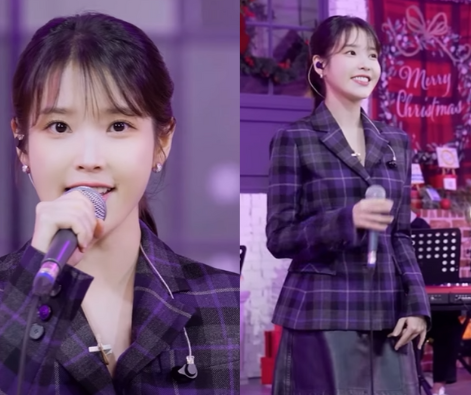 아이유는 평소 체크 패턴의 아이템들을 자주 착용하는 편인데 최근 sns에 공개한 영상 속에서도 그녀는 바이올렛 컬러의 체크 자켓을 착용, 미니 가죽 스커트와 매치하여 귀여운 프레피룩을 완성했다.