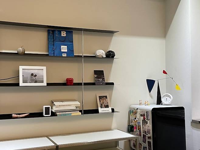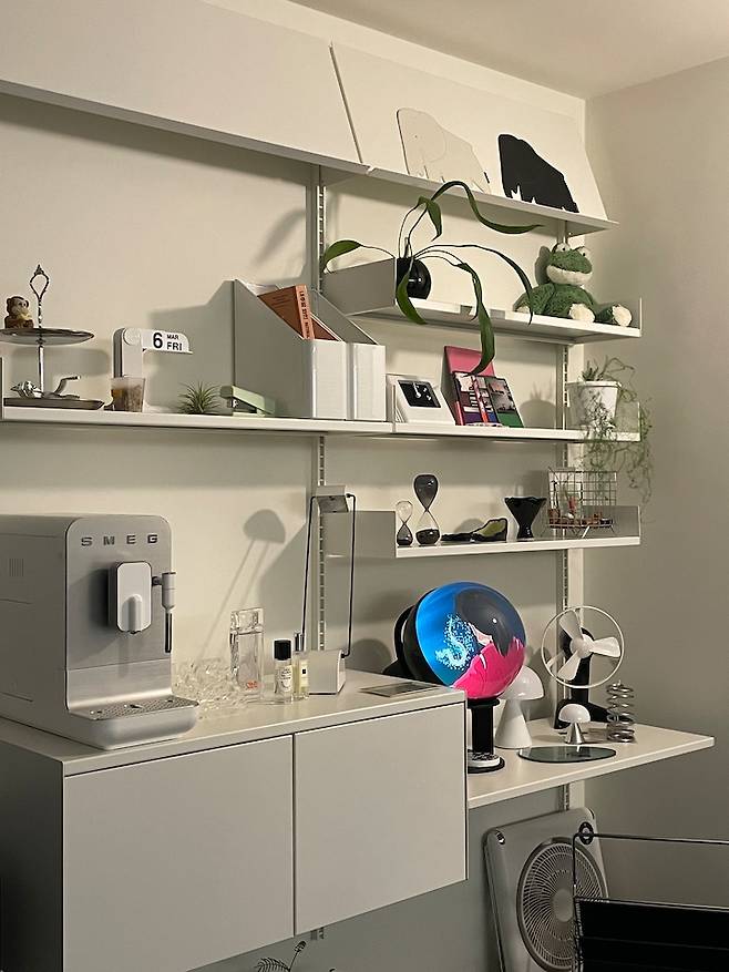 레어로우 시스템 선반은 정말 정말 마음에 드는 아이템 중 하나인데요, 칸이 다 움직이는 형태라 가끔 지루해지면 구조를 변경하며 기분 전환하기에도 좋을 것 같구요.
