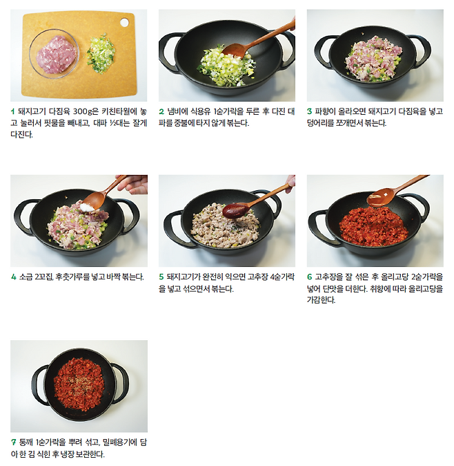 식용유 1숟가락, 소금 2꼬집, 후춧가루 조금, 고추장 4숟가락, 올리고당 2숟가락, 통깨 1숟가락