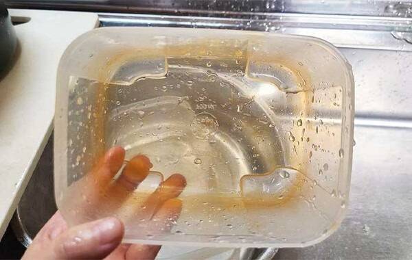 냄새가 밴 반찬통을 이 용액에 2~3시간 정도 담가둡니다.