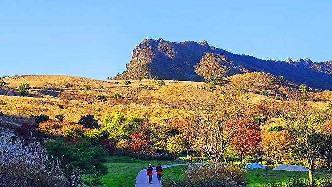 황매산은 봄엔 철쭉, 가을엔 억새와 단풍으로 명성이 자자하다.