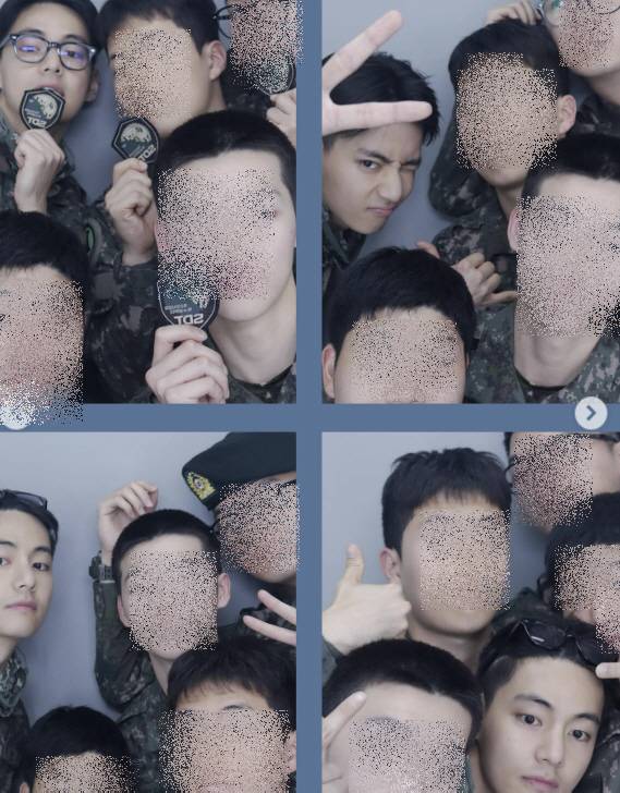 BTS 뷔, 군생활 사진 대방출...'동기들과 인생네컷→남친짤 셀카'로 아미들 심장 저격