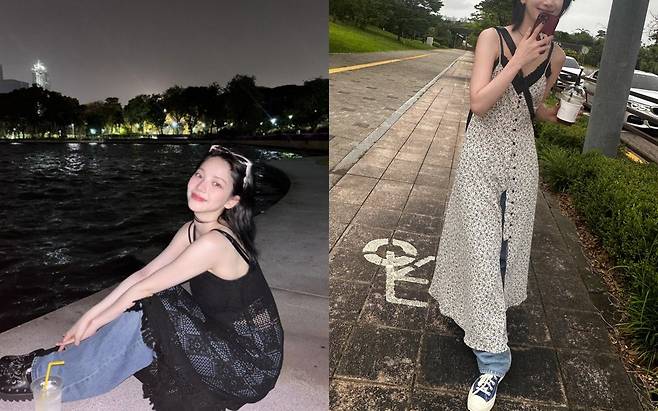 롱 스커트나 드레스를 좀더 힙하게 입고 싶다면 레이어드 코디에 도전해 보자. 준비물은 레이스 스커트와 데님 팬츠가 전부다. 사랑스러운 스커트 아래에 스트릿 감성이 물씬 느껴지는 와이드 데님 팬츠를 입어 주면 체형 커버는 물론 자유분방하고 발랄한 분위기까지 살릴 수 있다. 블랙 크로셰 원피스와 편안한 데님 팬츠를 레이어링한 카리나와 잔꽃 무늬 슬립 원피스에 컨버스와 팬츠를 매치한 우주소녀 설아의 코디를 참고하자.