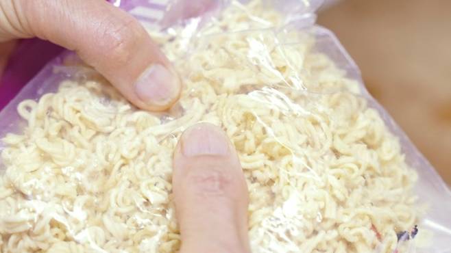 먼저 내용물을 뺀 후에 지퍼백에 넣어 마구 부숴주세요.