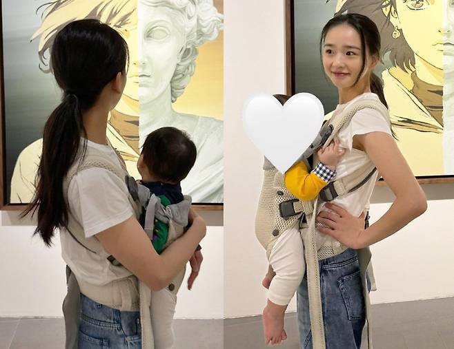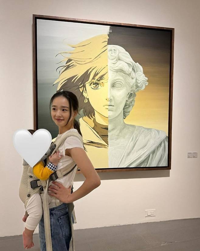 깔끔하게 묶은 헤어스타일은 발랄함과 단아함이 조화를 이루며, 엄마로서의 따뜻한 분위기와 손연재 특유의 순수한 이미지가 잘 어우러졌습니다.