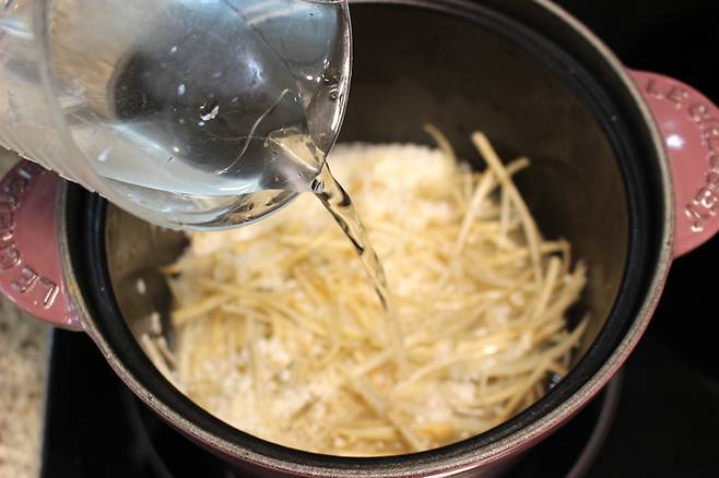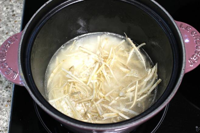 * 만약 콩나물이나 버섯처럼 수분이 많은 재료를 넣을 때는 물 양을 조금 줄이면 됩니다.