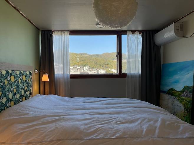 저희 부부는 안방 건너방을 침실로 쓰고 있어요. 창의 뷰가 너무 좋아서 낮잠 자기 딱 좋은 공간이에요 ㅎ 침실에는 침대만 있어야 한다는 주의라 방에는 딱 침대와 작은 하부장만 있어요.