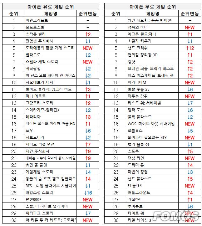 한편, 안드로이드 게임 순위는 지난주와 동일하기에 이번 주 차트에서는 다루지 않았다.