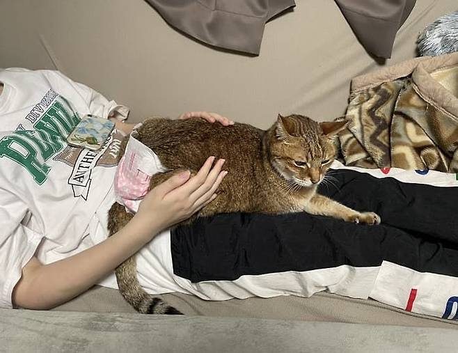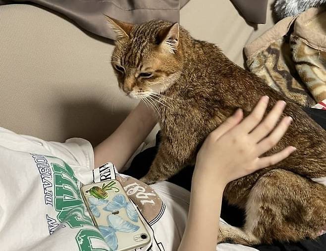 지금은 아기가 어엿한 청소년이 되어서 고양이가 끌어안아주는 것 대신 반대로 집사의 다리 위에 올라가 앉아 있는다고 합니다.