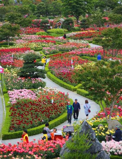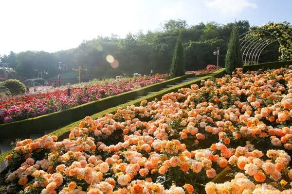 울산광역시의 울산대공원 장미원에서는 올해로 16회를 맞이한 장미축제가 개최됩니다. 무려 300만 송이의 장미가 화려한 조경을 완성해내고 있는데요. 중앙의 원형 분수는 마치 외국의 정원같은 분위기까지 품고 있습니다.