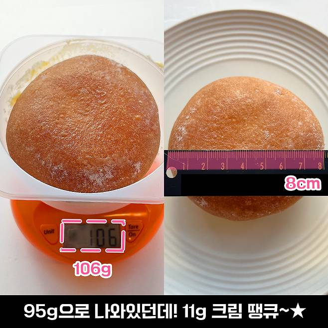 중량은 106g으로 봉지에 적혀져 있던 중량과는 차이가 있었어요. 95g이라고 적혀있었는데 크림을 11g 더 줬나 봐요. 호호 더 넣어줘서 되는데(^^)