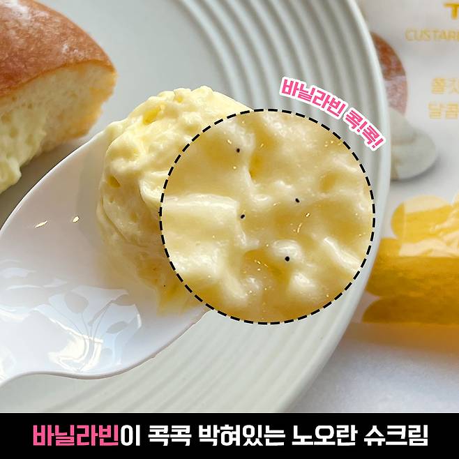 도넛 안에 노오란 슈크림이 들어가 있었는데 여기에 검은 씨처럼 있던 바닐라빈! 콕콕 박혀있는 걸 볼 수 있었어요~