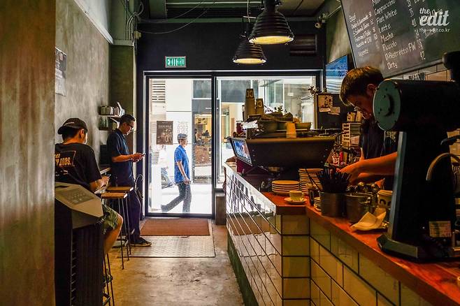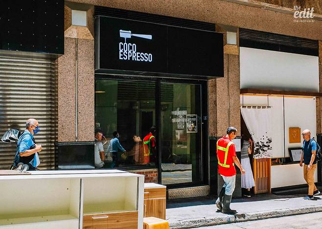 센트럴에 위치한 매장은 (홍콩에 8개의 매장이 있다) 커핑룸에서 1분 거리다. 현지인에게 인기가 많은 침차이키 식당을 지나서 한블럭 뒤편에 있다. 코코 에스프레소의 추천 커피는 에스프레소와 밀크커피. 이외에 바리스타의 추천으로 콜드 브루 커피를 함께 마셨다. 코코는 산미가 강하지 않고 안정적인 단맛을 베이스로 하는 이탈리아 에스프레소와 멜버른 스타일의 부드럽고 마일드한 밀크커피를 지향하고 있다. 산미가 강하지 않은 밀크커피가 현지에서 반응이 좋다. 콜드 브루의 경우 아이스 커피를 많이 마시는 (홍콩도 한국처럼 아이스 커피가 인기가 많다) 지역의 특징상 인기가 많다.