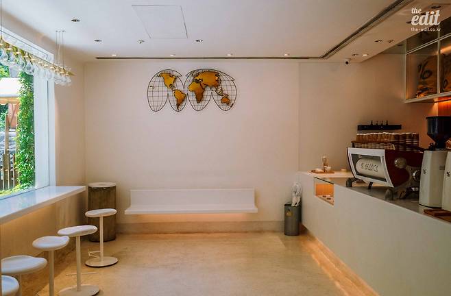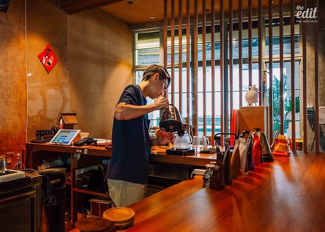 매장 입구에 스프링의 압력으로 에스프레소를 추출하는 빈티지 레버머신이 있지만, 대부분의 커피는 안정적인 시네소를 통해서 추출한다.