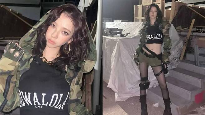 있지 유나는 무대 전 공개한 사진에서 밀리터리 톱과 팬츠를 입고 등장했다. 단단한 복근 라인과 강렬한 눈빛이 시선을 압도했다. 무대 조명과 어우러진 카모 패턴은 퍼포먼스에 에너지를 더했고, 액세서리를 최소화한 대신 표정과 눈빛으로 스타일을 완성했다. 평소에는 카모 톱을 데님 팬츠와 매치해 부담 없이 활용할 수 있다.