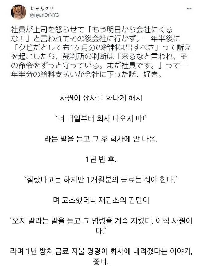 회사 나오지 말라는 말을 듣고 진짜로 안 간 사람