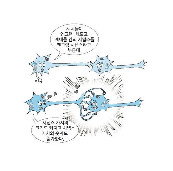 뇌가 외부 정보를 받아들여 습득하는 과정을 우리는 학습이라고 부른다. 그렇다면 학습할 때 엔그램 세포와 엔그램 시냅스에서는 어떤 물질적 변화가 일어날까.