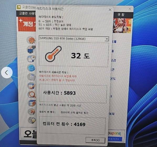 더 어이 없는것은 설치해준 SSD가 830모델인데 2011년 출시이고, 방금 고클린 돌여보니 사용시간이 5893시간이네요.