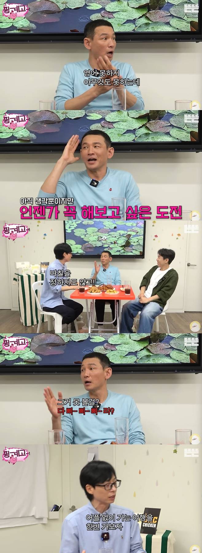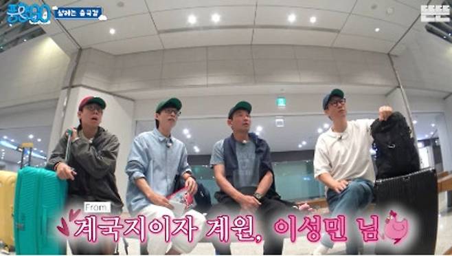 '핑계고'에서 유재석과 황정민은 버킷리스트를 이야기하며 여행을 추진했습니다. '풍향고'라며 즉석에서 콘텐츠 이름까지 정한 황정민은 "지석삼(지석진)처럼 영어 우쭐대는 사람이 있어야 한다. 석삼 형이 있어야 재밌다", "(지)진희를 한 번 불러봐야겠다. 걔가 알아서 사진 잘 찍는다"며 진지하게 게스트까지 구상했습니다.
