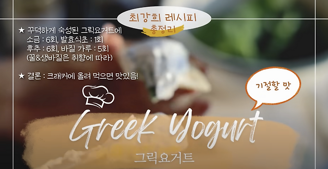 최강희는 “그릭요거트에 생바질, 소금, 후추, 발효식초, 벌꿀을 넣어 크래커와 함께 먹는다”고 설명했습니다. “바질과 후추를 듬뿍 넣으면 색이 예쁘다”고 조언하며, “아침마다 이렇게 먹는다”고 강조했습니다.