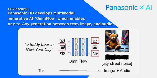 [엠투데이 임헌섭기자] 파나소닉홀딩스(Panasonic Holdings Co., Ltd.)와 파나소닉 R&D 아메리카(Panasonic R&D Company of America, PRDCA)가 미국 UCLA(캘리포니아대학교 로스앤젤레스 캠퍼스)와 공동으로 차세대 멀티모달 생성형 인공지능(AI) 기술 '옴니플로우(OmniFlow)'를 개발했다고 4일 밝혔다.