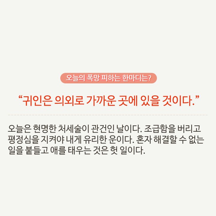 최소한 오늘 폭망은 피하게 해주는 참 고마운 띠별 오늘의 운세! 오늘 최소한 이것만 알면 폭망할 일 없어요.