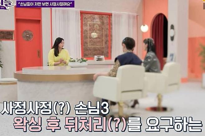 이어 "예약젠데 예약 없이 방문해서 그냥 가능하냐고 물어본다. 설명을 해도 막무가내로 해달라고 한다"고 밝히며 "다음에 오라고 하면 욕을 하면서 나간다. 비싼척한다고 간판을 발로 차고 나간다"고 전했다. 이 정도 수준은 진상 손님 급도 안된다며 심한 경우 왁싱 후 뒤처리를 요구하는 손님도 있다고 밝혔다. 공윤희는 이점이 제일 고민이라고 밝히며 왁서의 고충을 털어놨다.