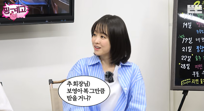 이를 듣던 박보영은 최근 신년회에서 겪었던 일화를 공개했다. 박보영은 “자현 언니가 이거 보면 안될 수도 있는데”라고 머뭇거리면서도 “신년회를 하다가 언니가 좋은 와인을 가지고 왔다. 첫 잔을 건배할 때 언니가 ‘복 받고 싶은 만큼 채우라고 했다’ 그런데 저한테 ‘복 그만큼만 받을 거니?’ 이러셨다”고 전해 모두가 폭소를 터뜨렸다.
