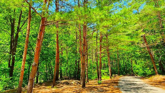 본격적인 들머리인 덕풍산장까지 걷는 길은 금강송 군락이 양옆으로 병풍처럼 서 있어 시원한 그늘과 솔향기를 동시에 느낄 수 있다.