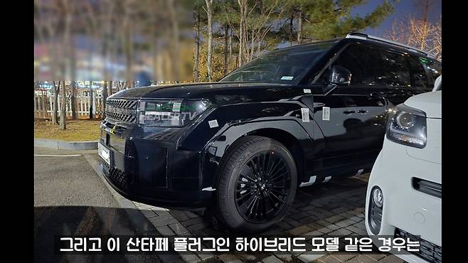 현대 싼타페 플러그인 하이브리드 블랙 잉크 모델이 최초로 모습을 드러냈다. 최근 힐러티비 채널에 포착된 차량은 기존 모델과 비교해 전면부 디자인에서 차별화된 모습을 보인다.
