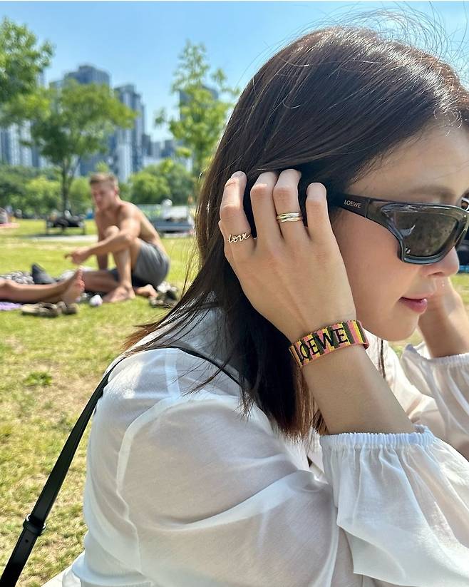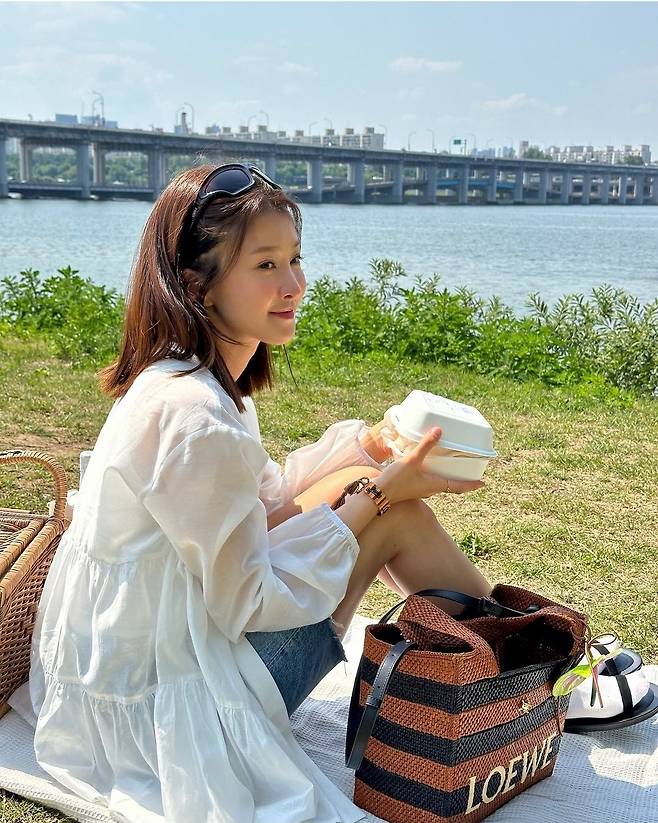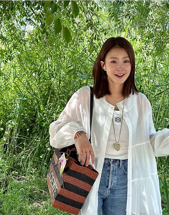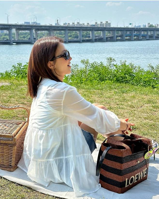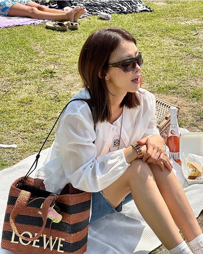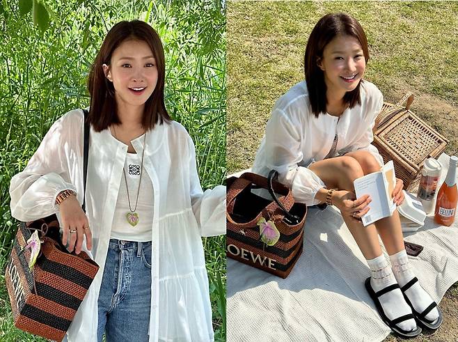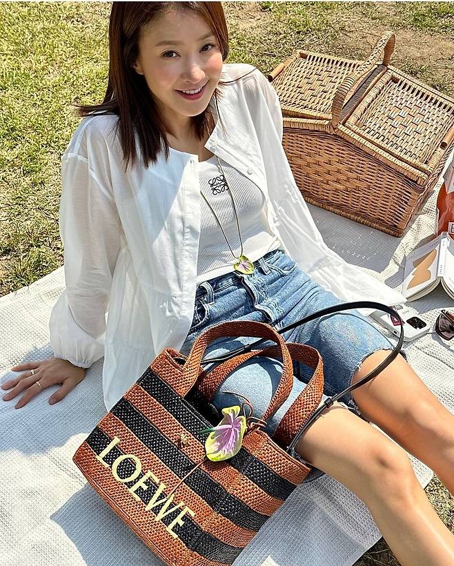 배우 이시영이 5일 인스타그램에 "✨이번시즌 로에베의 라피아백 1등은😝😝😝난 이거요 피크닉 가거나 수영장 갈때 너무 이쀼겠댜🫶🏻💗✨ 가방 참이랑 목걸이도 너무 예뿌죠???????😘😘😘"라는 글과 함께 여러 장의 사진을 게재했습니다.