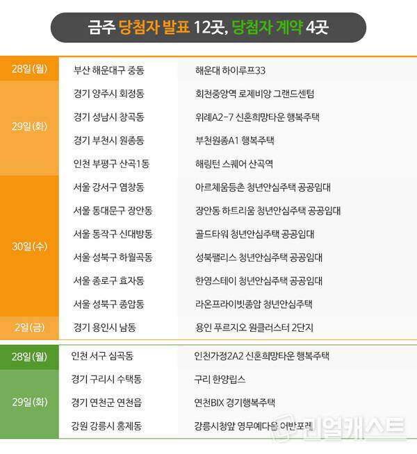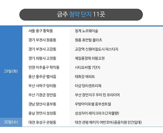 부동산인포에 따르면 4월 5주 전국에서 신규 청약 및 입주자를 모집하는 곳은 11곳, 총 5,829가구로 집계됐습니다(총 가구 수 기준).