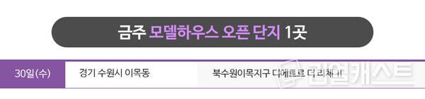 금주는 근로자의 날과 징검다리 연휴 등으로 모델하우스 오픈 소식이 적습니다. 오픈 예정인 곳은 1곳 뿐입니다.