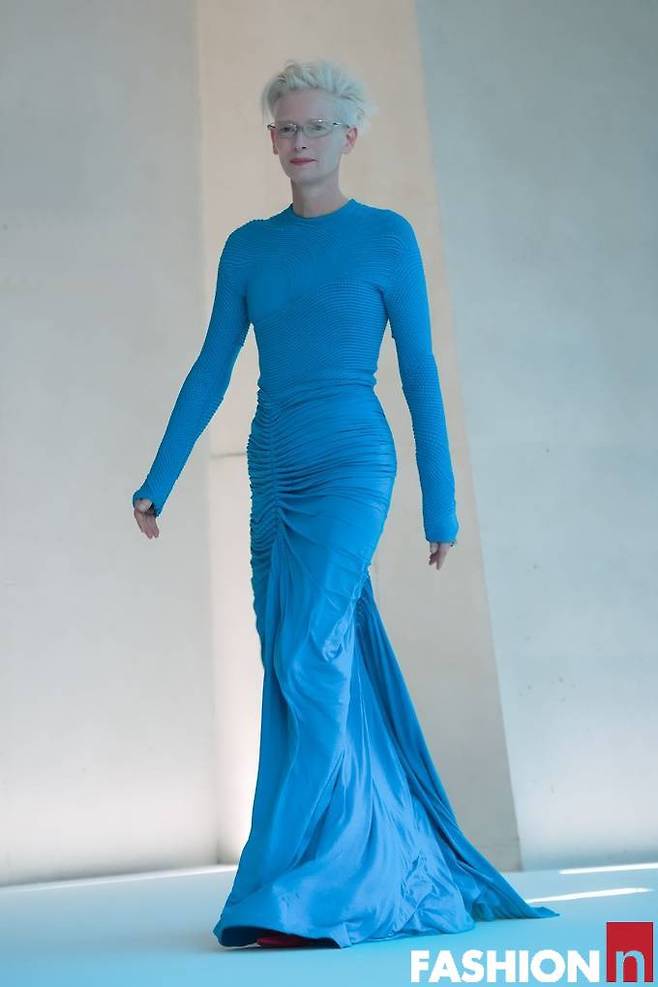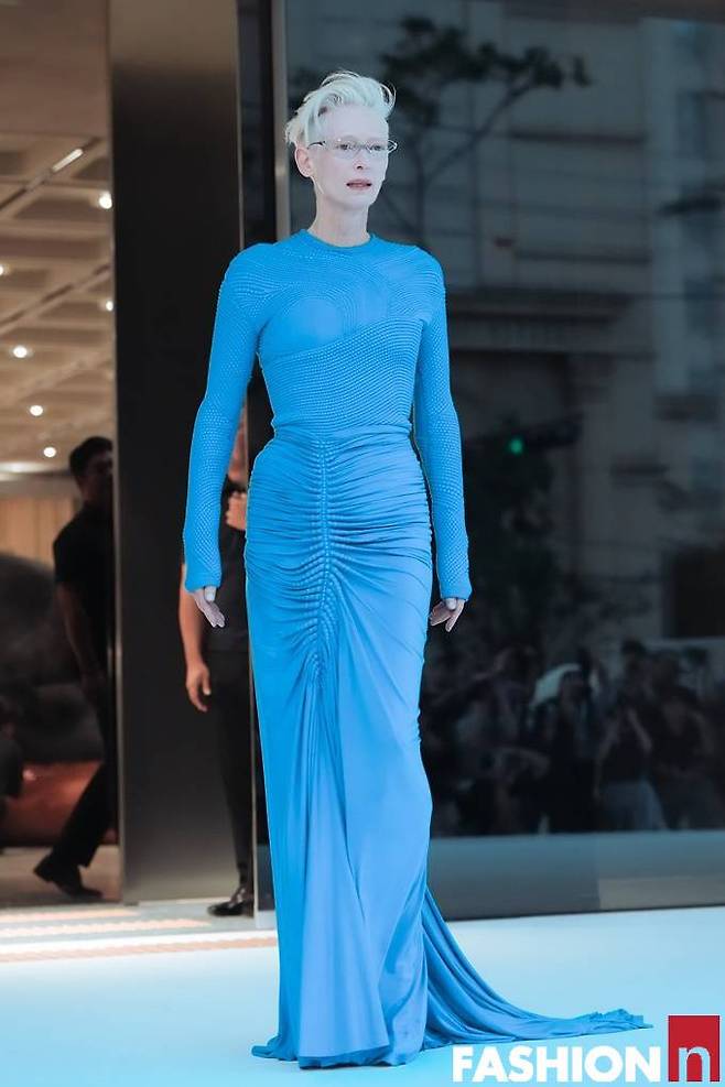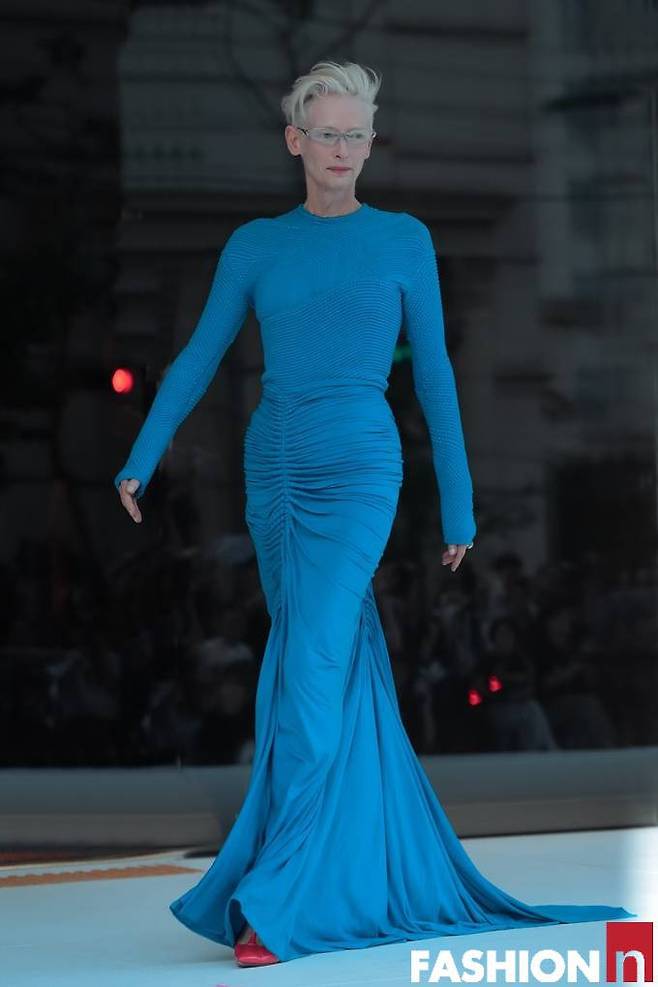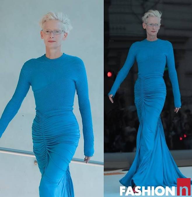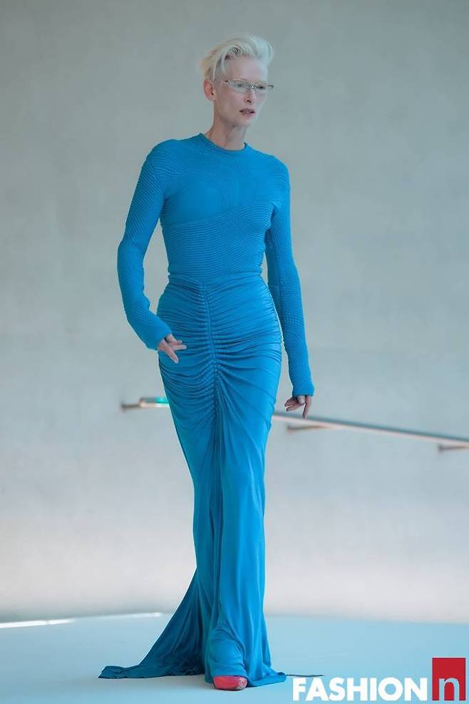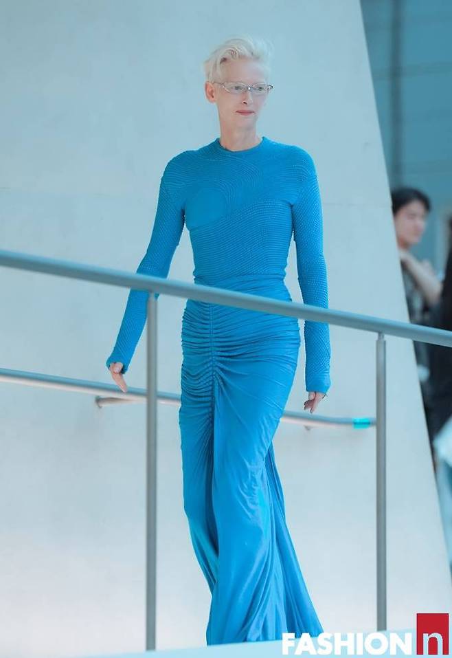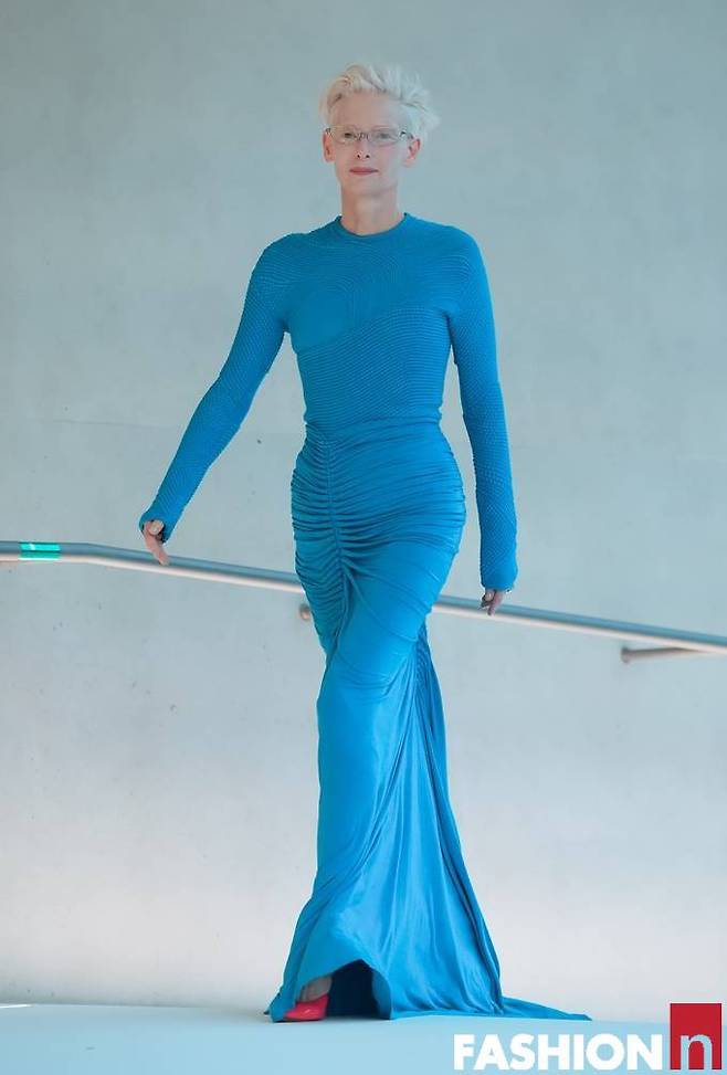 영국 배우 틸다 스윈튼(Tilda Swinton) 이 포스 넘치는 강렬한 블루 드레스룩으로 성수동을 발칵 뒤집었다.