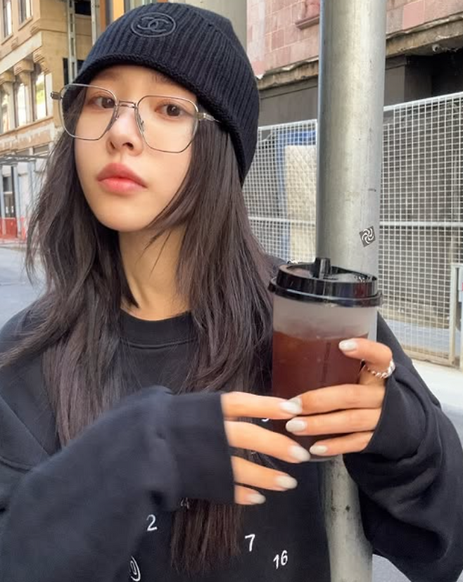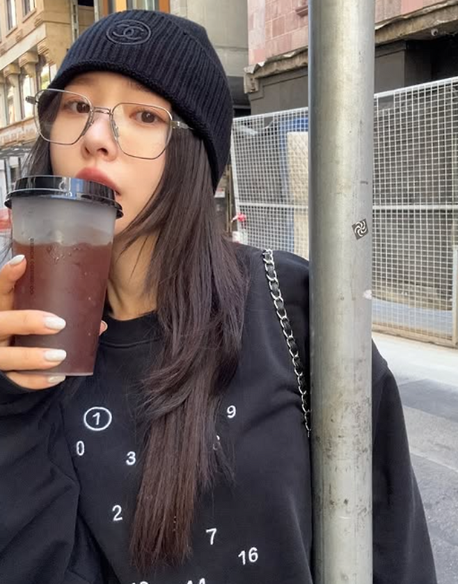 이솔이 님은 샤넬 비니를 착용해 시크하면서도 고급스러운 매력을 더했어요. 블랙 컬러에 로고 포인트가 돋보여 감각적인 스타일링이 완성됐죠.