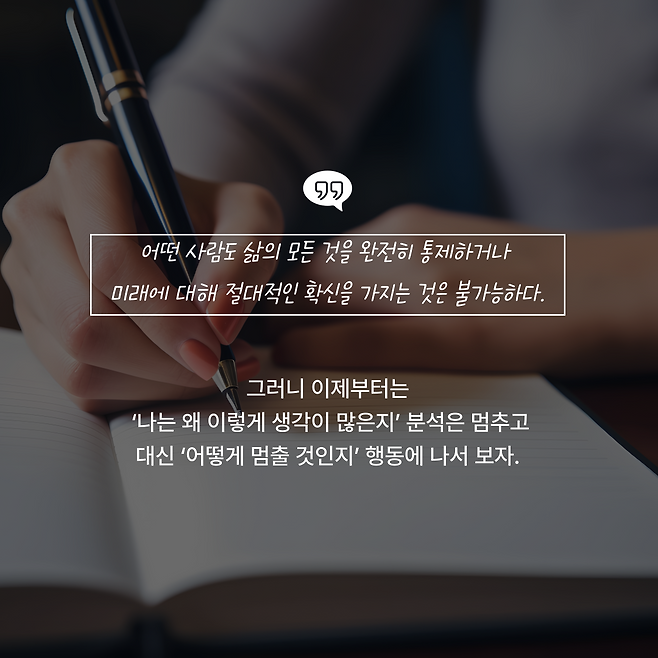 아무 일도 없는데 ‘혹시?’라는 의문이 끊이지 않고, 끝없이 시뮬레이션을 돌리다가 끝내 결정하지 못하고 행동을 미루고 있지 않은가요?