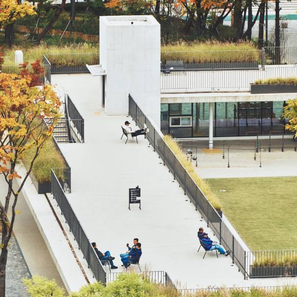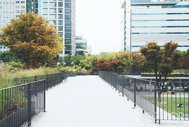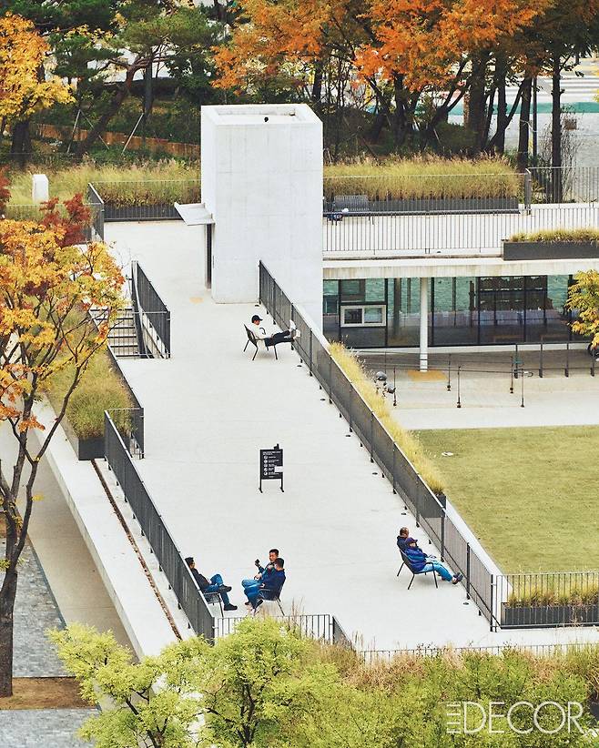 올해 리모델링을 마친 오목공원은 ‘도심 속 라운지’를 표방한다. 높이 약 3m, 폭 약 8m에 이르는 사각형 회랑을 공원 한가운데에 삽입한 이유는 무엇인가