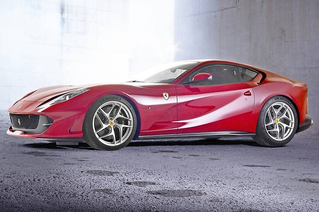 페라리 812 슈퍼패스트는 브랜드 역사상 가장 빠른 V12 엔진 차량으로 꼽힌다. 6.5리터 자연흡기 V12 엔진을 탑재해 최고 출력 800마력, 최대 토크 73.2kg·m를 발휘하며, 정지 상태에서 시속 100km까지 도달하는 데 단 2.9초가 걸린다. 이름의 ‘812’는 800마력과 12기통 엔진을 의미하며, 페라리의 전통적인 강력한 퍼포먼스를 계승한 모델이다.