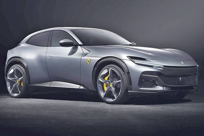 푸로산게는 페라리 최초의 4도어 4인승 모델로, 브랜드의 새로운 도전을 상징하는 차량이다. ‘푸로산게(Purosangue)’는 이탈리아어로 ‘순종(純種)’을 의미하며, 페라리가 정통성을 유지하면서도 실용성을 더한 모델로 개발되었다. 자연흡기 V12 엔진을 탑재해 최고 출력 725마력, 최대 토크 73kg·m를 발휘하며, SUV급 공간을 갖추면서도 스포츠카 특유의 역동적인 주행 성능을 자랑한다.